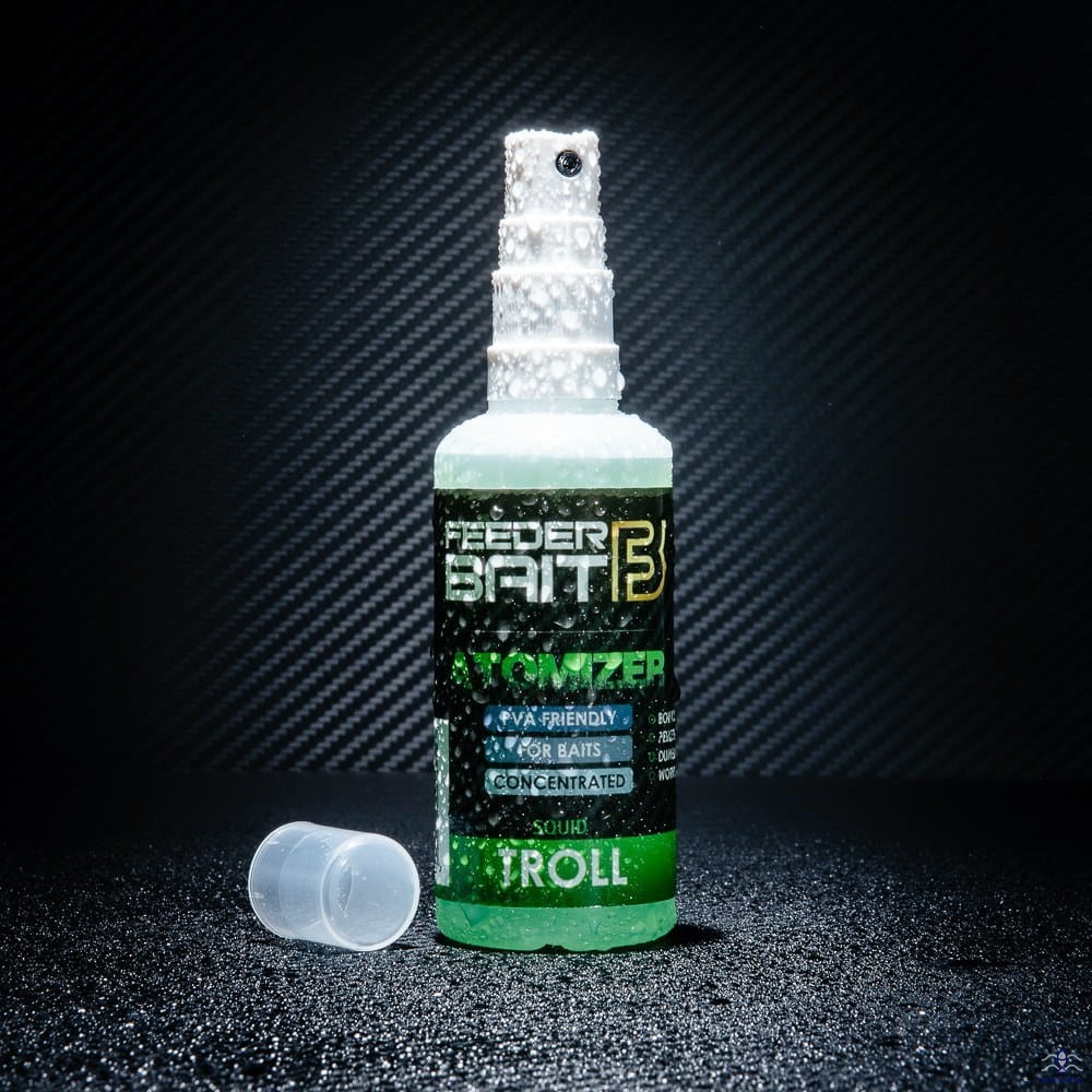 Atomizery dedykowane są pod sportowe łowienie w celu szybkiego podniesienia jakości używanych przynęt: kulek, peletów, robaków, ziaren oraz sztucznych przynęt. Zastosowanie cząstek charakterystycznych dla wabienia ryb między innymi rozpuszczalnych białek mlecznych sprawiło, że Atomizer Feeder Bait to niezwykle skuteczny atraktor. Skuteczność Atomizera jest spotęgowana dzięki słodzikowi NHDC, który jest 1800 razy słodszy od cukru i dobrze się rozpuszcza w wodzie o niskiej temperaturze. Łatwość w użyciu pozwala na zastosowanie w dowolnym momencie podczas łowienia. Nie rozpuszcza PVA.