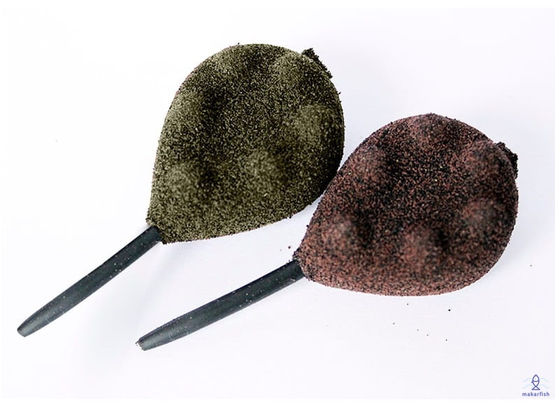Wszystkie ciężarki są wykonane w precyzyjnych formach w wtryskowych CNC, co zapewnia idealną powtarzalność kształtu przy różnych gramaturach oraz znakomite własności użytkowe. Ciężarki są powleczone wyjątkowo odpornym na uszkodzenia, neutralnym zapachowo tworzywem, które nie tylko sprawuje funkcje maskującą lecz pozwala się doskonale dipować. W ciężarkach z krętlikiem zastosowaliśmy czernione oczko z nierdzewnej stali oraz niezwykle mocne matowe krętliki. Ciężarki przelotowe posiadają miękką, superprecyzyjną gumkę doskonale trzymającą krętliki nr 8.