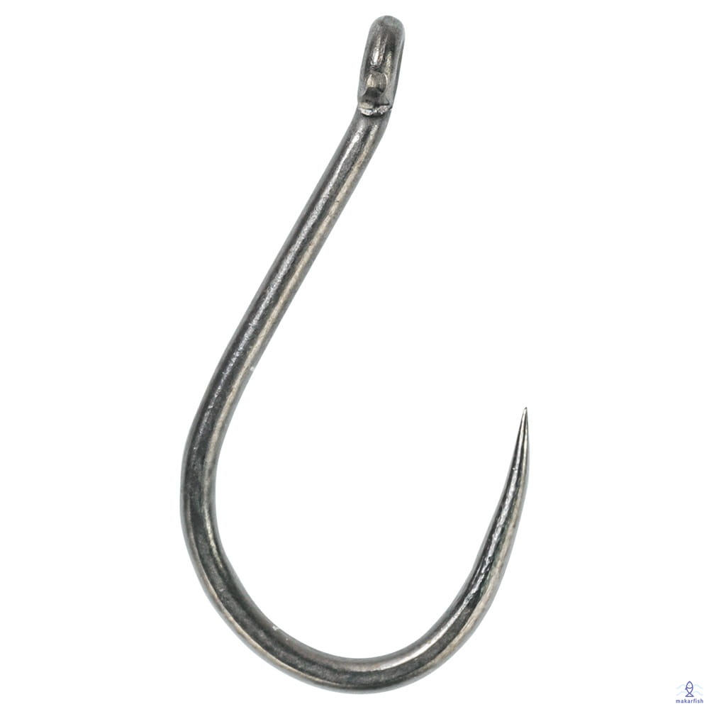 Haki ze stali o wysokiej zawartości węgla; trzonek z dość grubego drutu o średniej długości zakończony odchylonym oczkiem; szerokie, kute kolanko; zagięty grot bez zadziora; nano powłoka: brak odblasków, łatwiejsze zakładanie przynęty i lepsze zacinanie ryby.