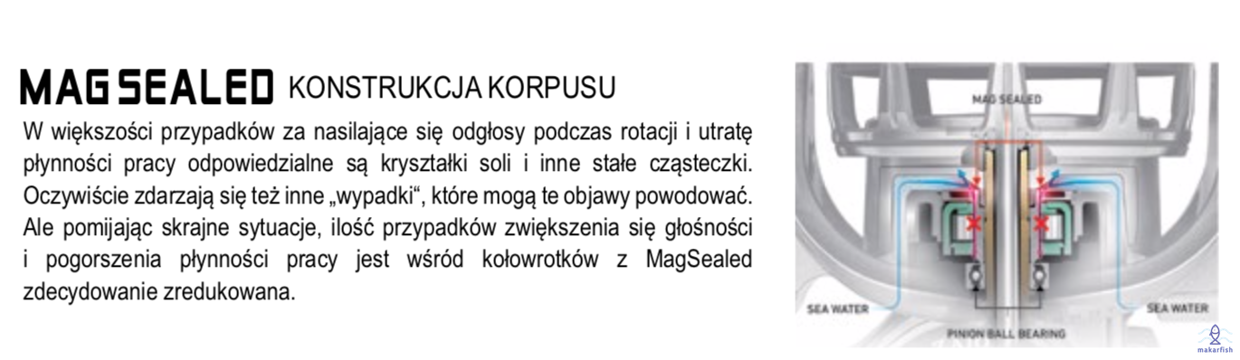 - Oś kołowrotka zabezpieczona MAGSEALED®