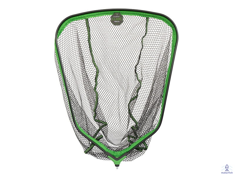 Pływający kosz o kwadratowym kształcie z serii REAXE z lekką, ale wytrzymałą czarną aluminiową ramą. Siatka podbieraka FloateR CUBE pokryta jest gumą, dzięki czemu nie chłonie wody i szybko schnie. Dodatkowo jest pokryta zieloną tkaniną na całej ramie od spodu, aby zwiększyć trwałość. Ponieważ kosz unosi się na powierzchni wody, można go tam pozostawić do czasu, aż ryba zostanie wyholowana i doprowadzona do podbieraka. Konstrukcja pasuje do zielono-czarnego koloru naszej serii feederowej REAXE. Idealnie nadaje się do łączenia ze sztycą REAXE, ale pasuje do większości standardowych sztyc dostępnych na rynku.