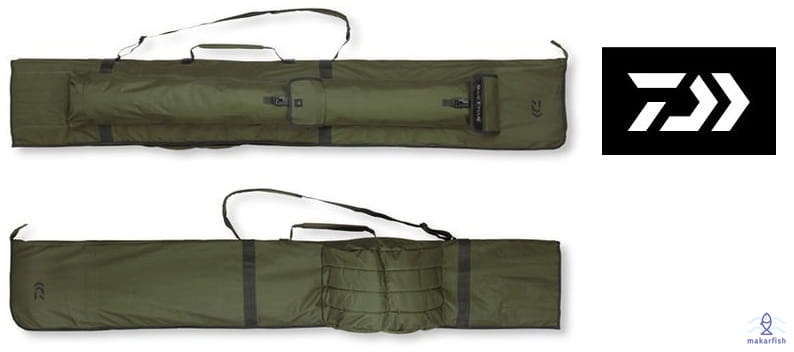 Wysokiej jakości, wyściełany futerał na 3 wędki (wersja 12ft.) lub 4 wędki (wersja 13ft.) z kołowrotkami. Dodatkowo pomieści także 3 lub 4 wędki zapasowe. Futerał przystosowany jest do transportu wędzisk z 50mm przelotką prowadzącą. Duża kieszeń na podbierak lub podpórki.