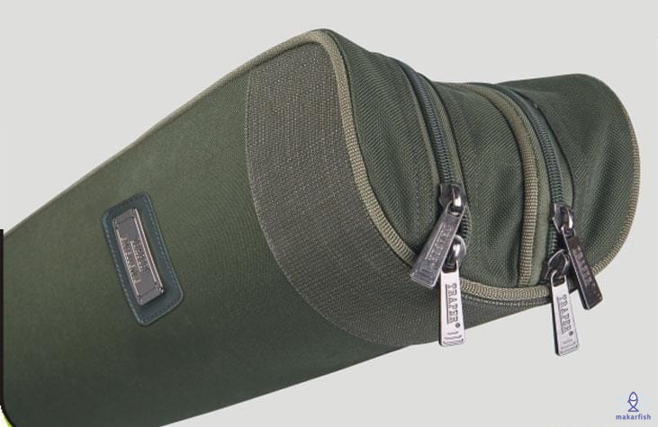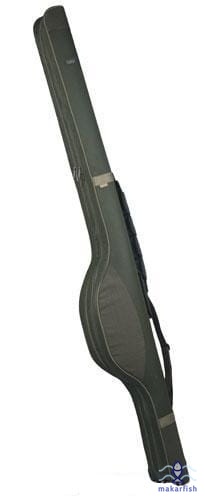 Dwukomorowy, usztywniony płytą poliwęglanową pokrowiec do bezpiecznego transportowania dwóch uzbrojonych wędek.