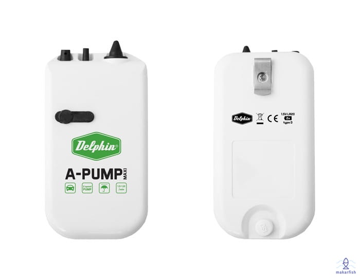 Pompka A-PUMP MAXI jest dedykowana dla przechowywania przynęt - rybek do 80 godzin! Zasilacz jest wyposażony w dwie baterie 1,5V LR20 lub adapter do zapalniczki samochodowej, który jest dołączony do zestawu. Pompka ma dwie prędkości, a powietrze dostarcza z intensywnością 1 do 1,2 litra na minutę. Częścią samego silnika pneumatycznego jest zawieszka na wiadro o szerokości 1,5 cm, co umożliwia umieszczenie pompki bezpośrednio na wiadrze. Komplet zawiera gumową rurkę z kamieniem na końcu. Żywotność baterii to aż 80 godzin, dzięki czemu można utrzymać przynęty w dobrej kondycji przez długi czas. A-PUMP MAXI jest wytrzymały na deszcz.