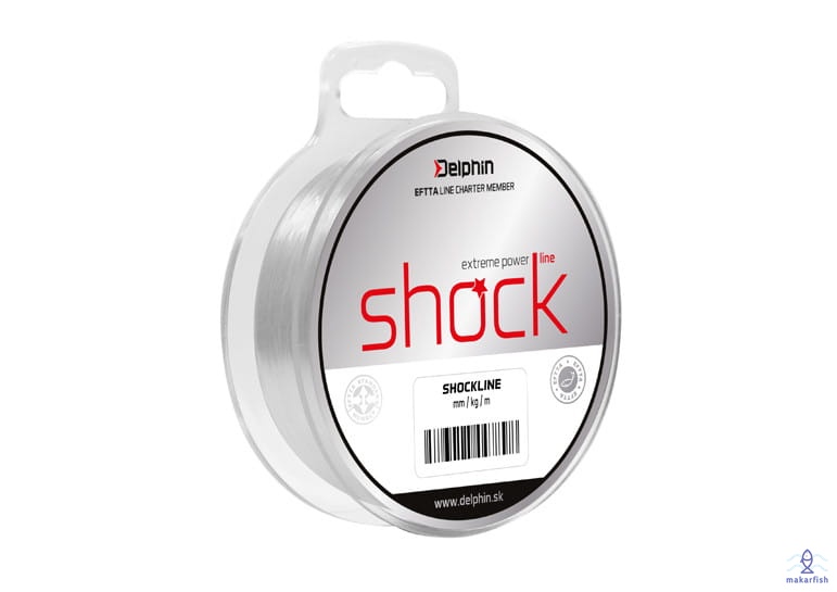 Żyłka od słowackiej firmy Delphin, która jest używana jako końcowa przypona. Pozwala na wyrzucanie przynęt bez obawy o przerwanie podczas chwilowego przeciążenia. Model SHOCK LINE jest zbudowany na rdzeniu odpornym na ścieranie. Jest kilka razy bardziej odporna na ścieranie niż standardowe żyłki nylonowe. Dlatego idealnie nadaje się do wód pełnych muszli, ostrych kamieni. Zastosowany materiał CPA 6.6 to gwarancja najniższego współczynnika tarcia, który znacznie zwiększa jej odporność na przetarcia w porównaniu z konwencjonalnym materiałem do produkcji żyłek - PA 6. W związku z tym SHOCK LINE nie zawiera żadnych powłok odpornych na ścieranie powierzchni, których proces nakładania i powlekania znacznie zmniejsza wytrzymałość żyłki.