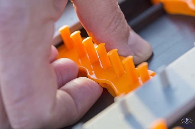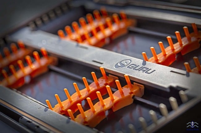 Dwustronne pudełko na przypony Guru Rig Case XL. Pudełko posiada gumową uszczelką oraz zamykanie na klipsy. Do pudełka dołączone są etykiety pozwalające oznakować rodzaj. Pojemnik pozwala na przechowywanie krótki i długich przyponów, np. do klasycznego feedera. Piórnik pomieści nawet 1500 gotowych przyponów. Jest to jeden z największych organizerów na przypony na rynku.
