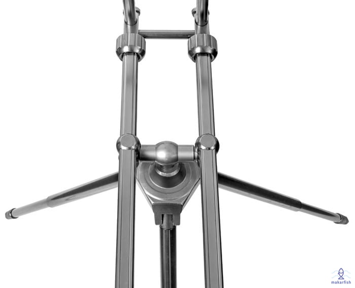 Niewątpliwą zaletą w porównaniu do konkurencji są wysuwane i regulowane główne ramiona o kwadratowym profilu. Kwadratowy profil eliminuje możliwość skrętu, co zapewnia znacznie lepszą stabilność w porównaniu do ramion okrągłych. Dokręcanie przegubu głównego odbywa się za pomocą tzw. „Mechanizmu imadłowego”, w którym po ustawieniu statywu pod optymalnym kątem wystarczy dokręcić śrubę podobnie jak w imadle. Atutem jest również haczyk na spodzie, do którego można przyczepić obciążenie w przypadku niekorzystnych warunków atmosferycznych, co przesunie stabilność statywu na jeszcze wyższy poziom. Dzięki teleskopowym nogom i regulowanemu kątowi wysięgników można ustwaić przednią część statywu TPX do poziomu 125cm nad ziemią. Pozwala to na prowadzenie żyłki z dużej wysokości, dzięki czemu TPX jest odpowiednim towarzyszem podczas łowienia w rzekach i dużych zbiornikach. W przypadku tripoda Delphin TPX praktyczna walizka transportowa jest w zestawie.