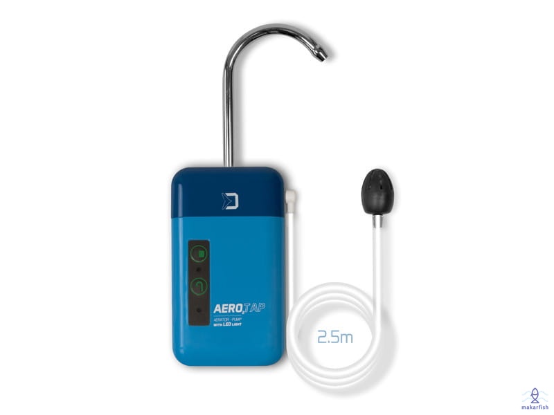Ta wielofunkcyjna pompka tlenowa nadaje się do przechowywania żywych przynęt, ale także do mycia rąk lub naczyń. Pompując trzy litry wody na minutę, zapewnia przynęcie wystarczający komfort podczas dłuższego transportu. AeroTAP może być używana jako kran z wodą o wydajności 1 litra wody na minutę. Wbudowany czujnik ruchu sprawia, że jest bardzo łatwa w użyciu. Dodatkowo posiada hak z tyłu, który umożliwia zamocowanie jej na wiadrze lub konstrukcji namiotu. Bateria wystarcza na 8 godzin, wystarczająco na dłuższe wyprawy, gdy nie ma możliwości ładowania.