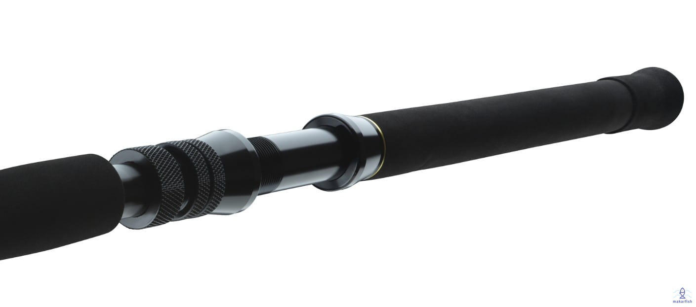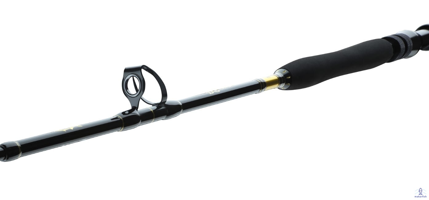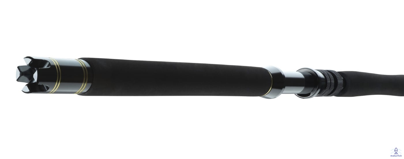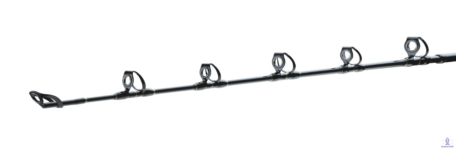 Model 30-50lbs ma rolkową przelotkę szczytową. Lżejszy model 20-30lbs ma normalną przelotkę szczytową z ceramicznym pierścieniem. Obie wędki mają wysokiej jakości, niezwykle trwały i odporny na skręcanie aluminiowy uchwyt kołowrotka oraz gumową nasadkę na dolniku typu gimbal.