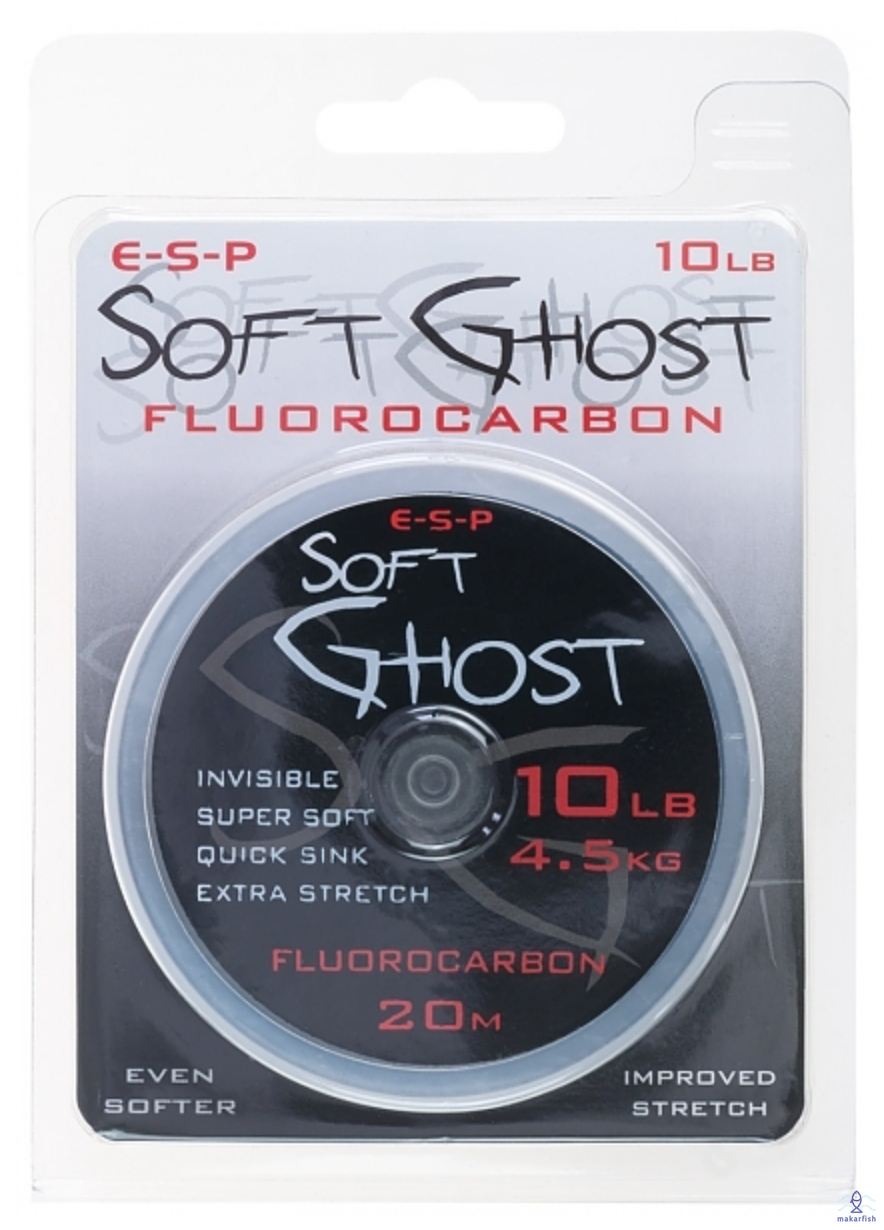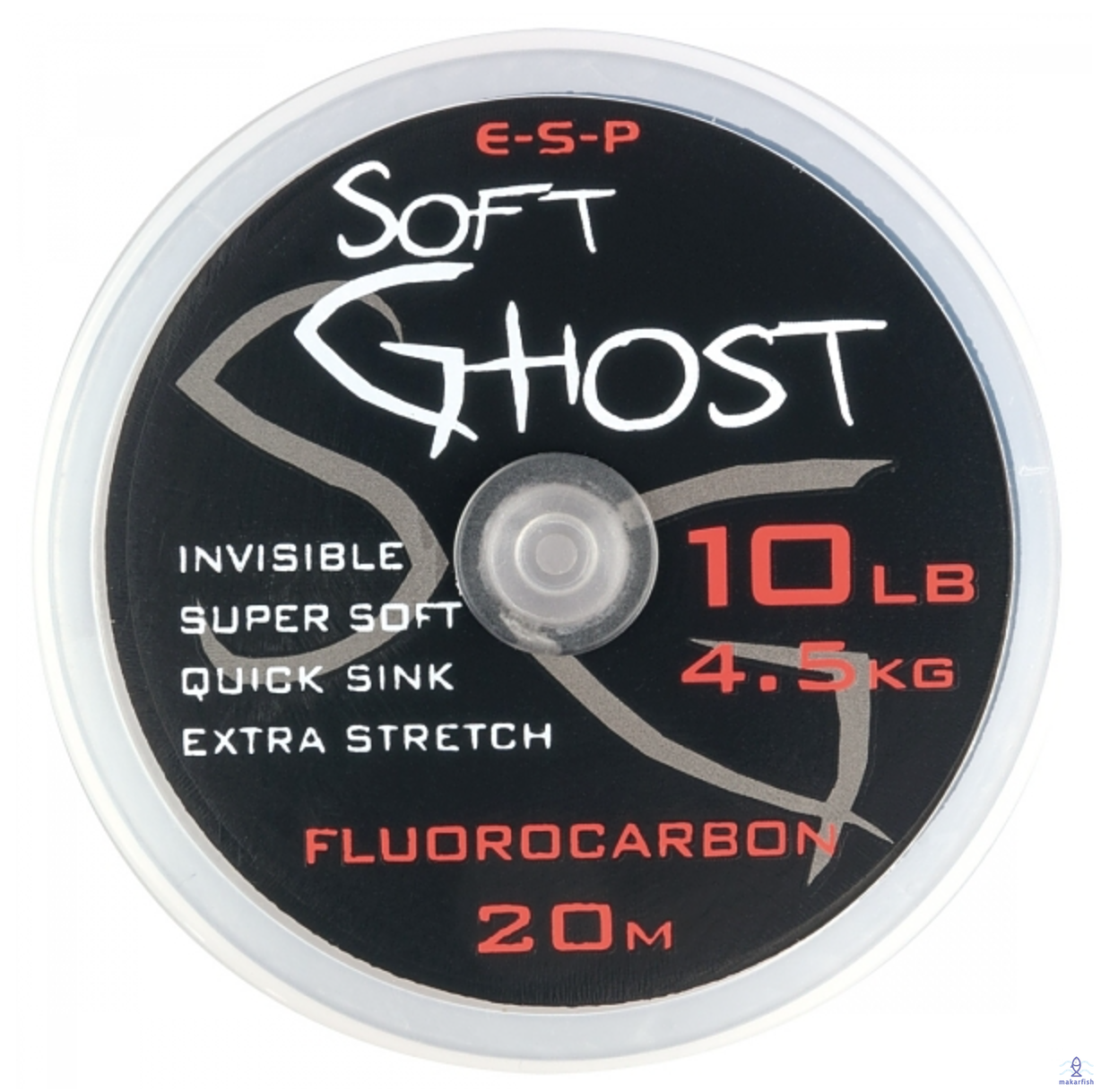 ESP Soft Ghost jest miększym i bardziej uniwersalnym materiałem. To czysty fluorocarbon o identycznym współczynniku załamania światła jaki ma woda, dzięki czemu jest praktycznie niewidzialny. Dzięki swojemu ciężarowi tonie natychmiastowo. Jest idealnym materiałem na przypony zwłaszcza przy połowie karpi w przezroczystej wodzie.