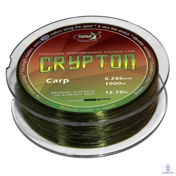 Crypton, to żyłka dedykowana do połowu karpi. Jaki kolor jest tej żyłki? Zastosowano innowacyjną technologię odbicia światła, która kamufluje żyłkę w każdej wodzie i na każdej głębokość. Ciężko określić kolor ponieważ jest to żyłka typu kameleon. Kolor najbardziej podobny do Motor Oil - od zielonego do brązowego. Żyłka pokryta jest specjalną polerowaną powłoką, która chroni żyłkę przed uszkodzeniami i brudem, dzięki temu pozostaje czysta i gładka przez długi czas. Znaczniki na szpuli co 250m. Miękka, bardzo odporna na ścieranie, mega mocna na węzłach, idealna do rzuty i do łowienia w każdych warunkach podwodnych.